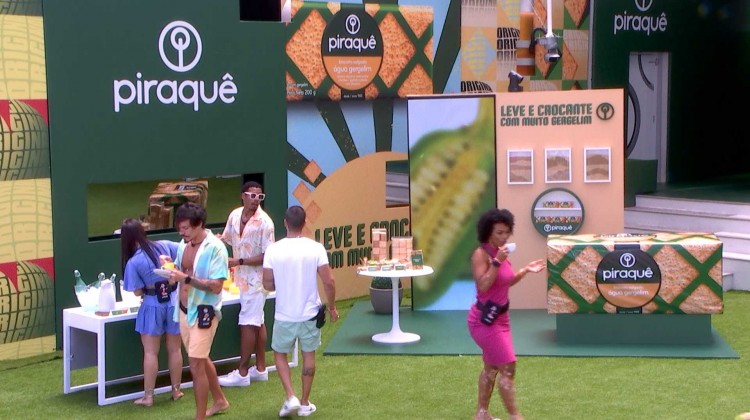 O sambista aparece no telão e fala com os confinados: “Fala BBB 22! Vocês sabiam que assim como eu, a Piraquê, a marca que o Brasil adora, também é lá de Madureira, do Rio de Janeiro. Eu sou o novo mestre de originalidade da Piraquê e vou poder dar várias ideias. Camarão que dorme a onda leva, isso aí dá samba hein! E agora quero convidar vocês para um café da manhã pra lá de original".