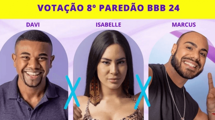 Davi, Isabelle ou Marcus? Confira parciais da Enquete BBB 8º Paredão. Também vote e veja resultado de quem deve sair do BBB 24